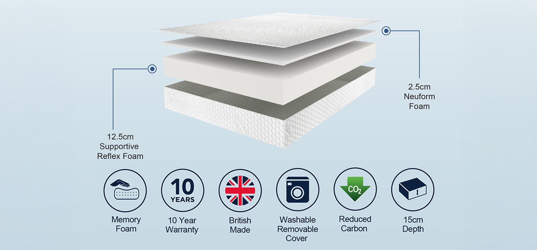 The Comfort Plus mattress has an additional Neuform Memory Foam layer on top of the standard reflex foam, for additional comfort and support.