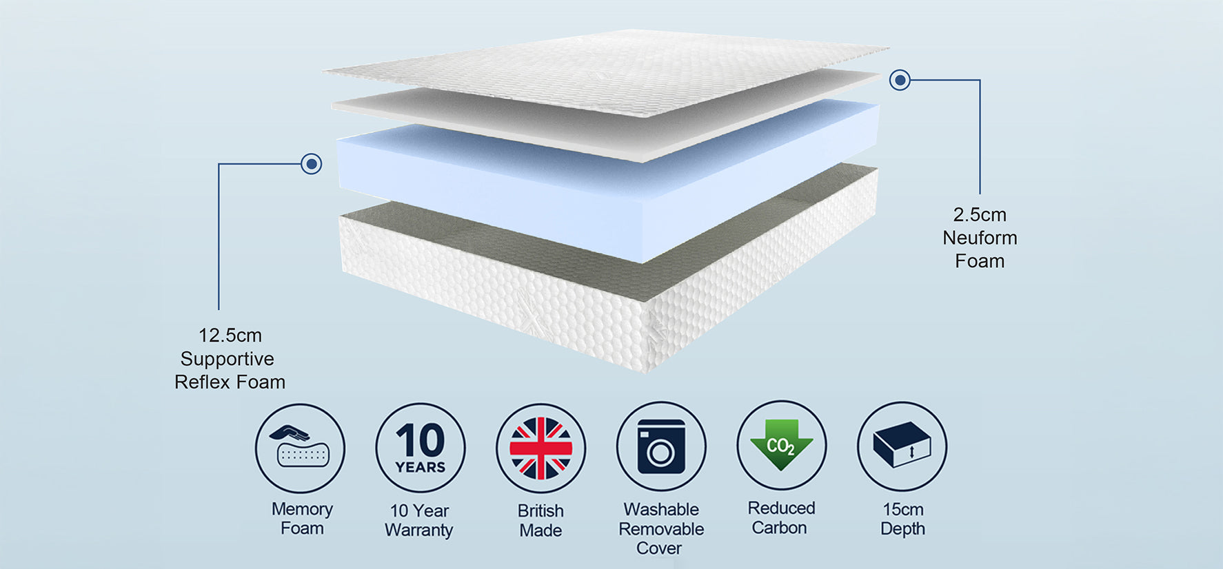 The Comfort Plus mattress has an additional Neuform Memory Foam layer on top of the standard reflex foam, for additional comfort and support.